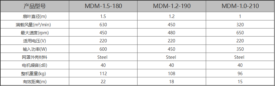 MDM采用永磁無刷電機直接驅(qū)動, 電機高效節(jié)能, 超高可靠性,扇葉采用高強度鋁鎂合金,流線結(jié)構(gòu)扇葉大化風(fēng)量及風(fēng)扇覆蓋距離, 相比低成本鈑金扇葉, 流線結(jié)構(gòu)扇葉有更好出風(fēng)效率,氣流平穩(wěn)性,靜音效果。 產(chǎn)品適合室內(nèi),室外使用, 方便實用
